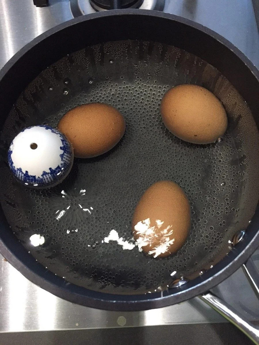Holen Sie zwei Eimer Wasser für ein mittelweich gekochtes Ei.