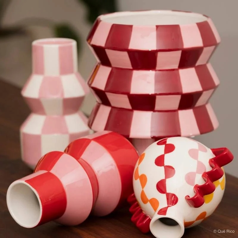Die rosa Vase Celestino Squares and Stripes von Que Rico ist eine Designvase mit grafischem Muster. Ideal als dekorative Vase oder Blumenvase. Eine moderne Statement Vase und ein besonderes Geschenk für Liebhaber von Interieur und Design. Lesen Sie mehr