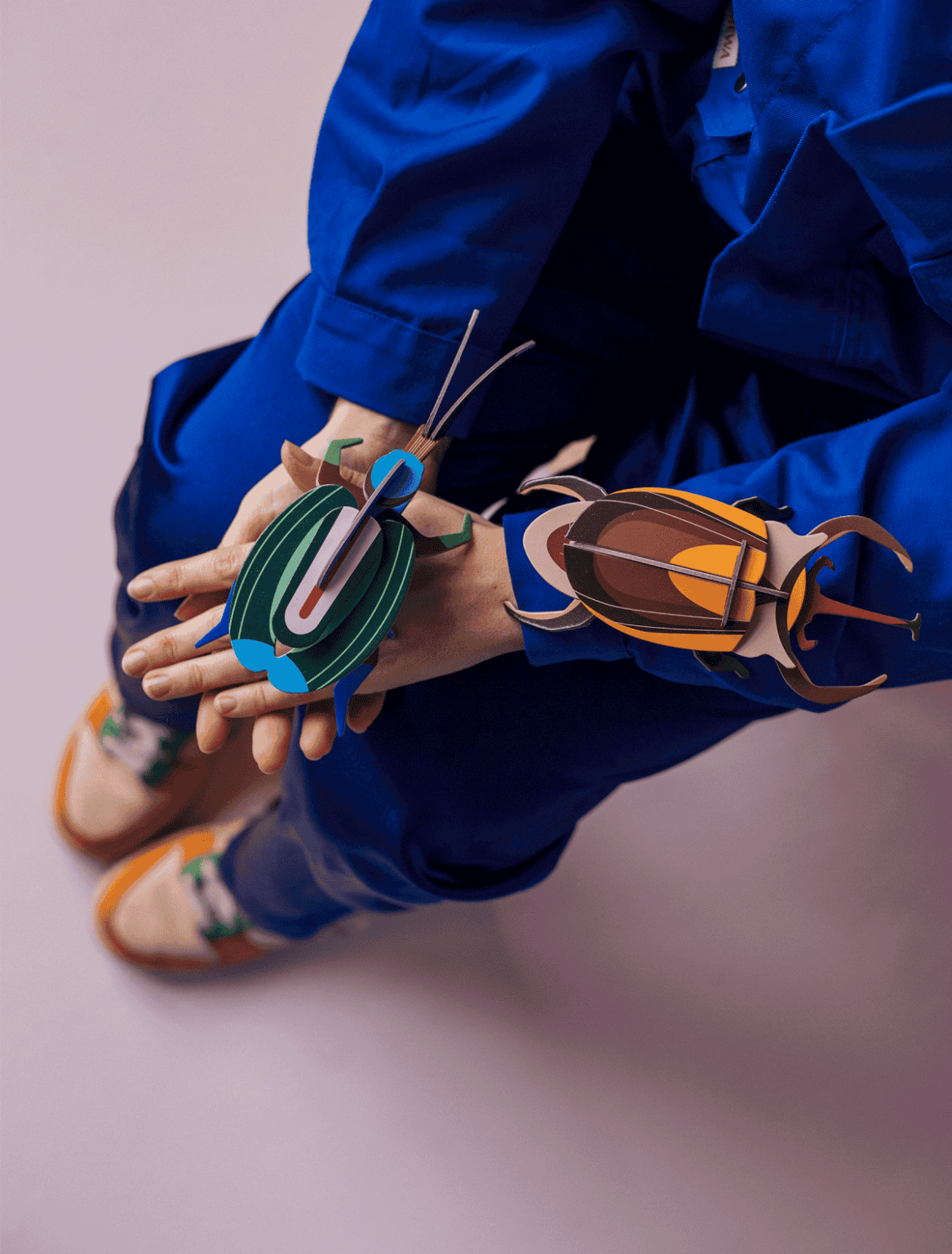 Studio Roof ist dafür bekannt, nachhaltige Materialien mit detaillierten, fantasievollen Designs zu kombinieren. Der Elefantenkäfer ist ein perfektes Beispiel dafür: einzigartig, bewusst und stilvoll.