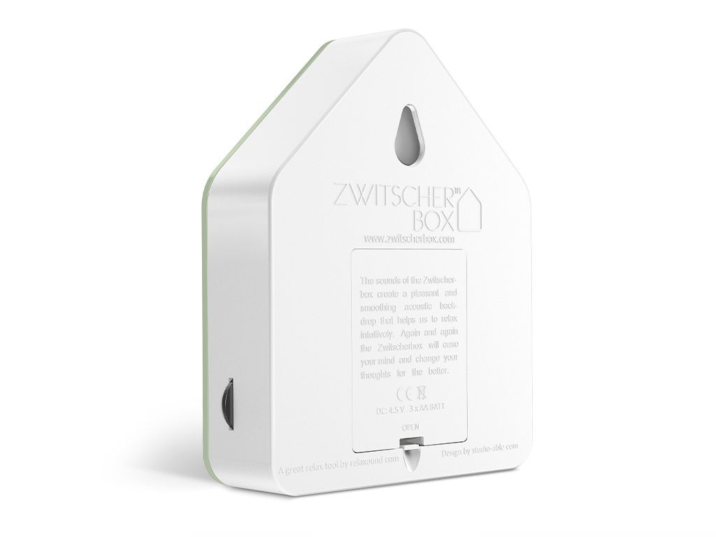 Jede Zwitscherbox mit Vogelklängen wird mit höchster Präzision gefertigt. Das Gerät misst etwa 14,5 × 3,5 cm und wird mit drei AA-Batterien betrieben. Es ist leicht, kabellos und flexibel einsetzbar. Relaxound achtet auf nachhaltige Materialien und ausgezeichnete Klangqualität. Das Ergebnis ist ein Produkt, das Stil, Technik und Wohlgefühl perfekt vereint.