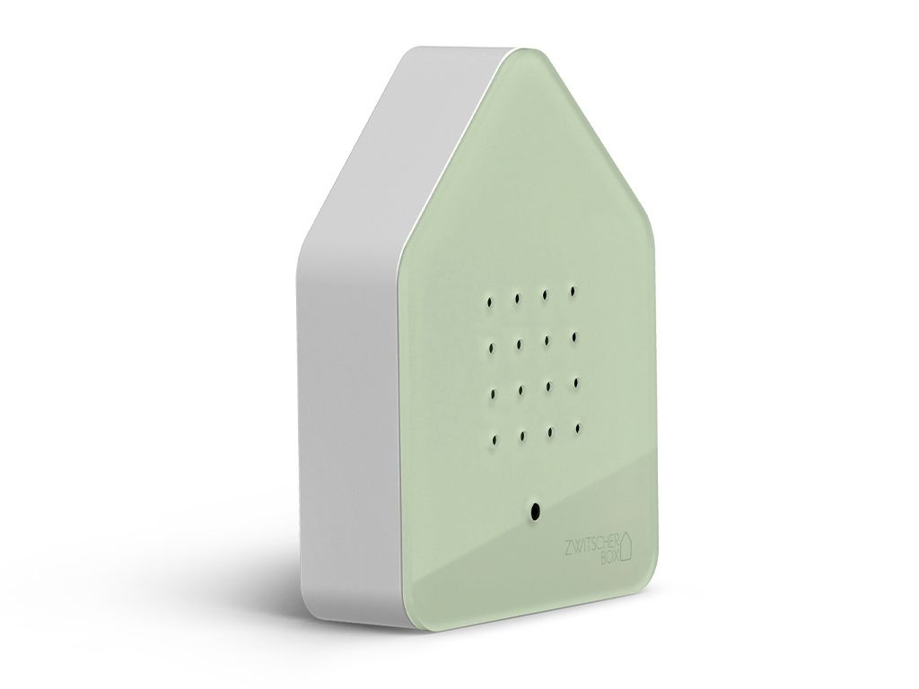 Das Zwitscherbox Vogelhäuschen Sage bringt natürliche Gelassenheit in Ihr Zuhause. Sobald Sie vorbeigehen, erklingen sanfte Vogelstimmen, die den Raum mit Ruhe und Freude füllen. Das elegante Design in Salbeigrün strahlt Leichtigkeit aus.