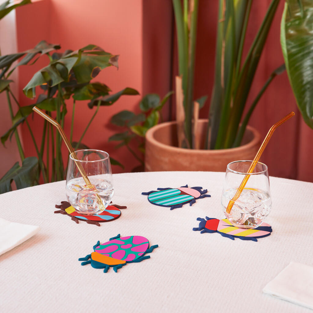Coasters glass beetles set of 4 Balvi. Original design coasters made of plastic with insect print. Practical and stylish as luxury coasters or gifts. Order now at Kado in Huis and protect your table with these fun and eye-catching coasters. Read more