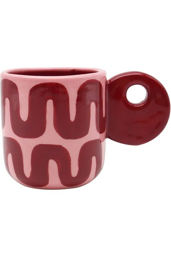 The Leonor Retro Rhythm coffee mug by Que Rico combines retro design with comfort. The ceramic mug feels great in hand and suits coffee and tea. A striking red design mug and an original gift for lovers of characterful tableware. Read more