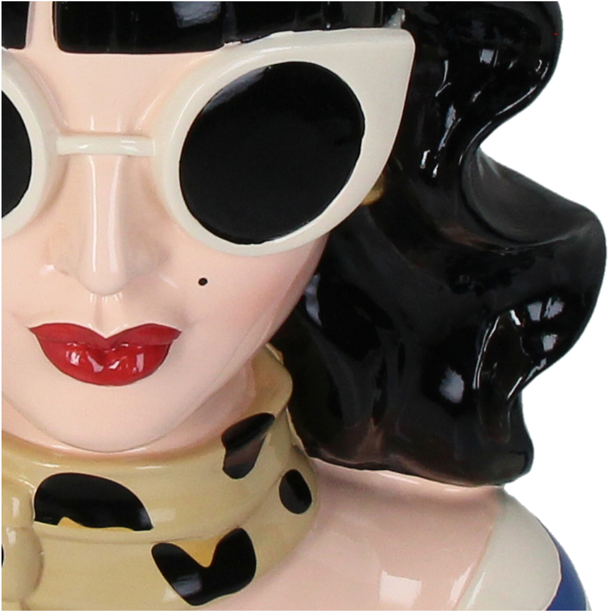 The vase represents a feminine face, finished with elegant black hair and a fashionable look. Customers call her “stylish with a wink” and “an eye-catcher that enhances every floral bouquet”. The vase exudes class and works well as a centerpiece on a coffee table, cabinet or dining table – even without flowers.