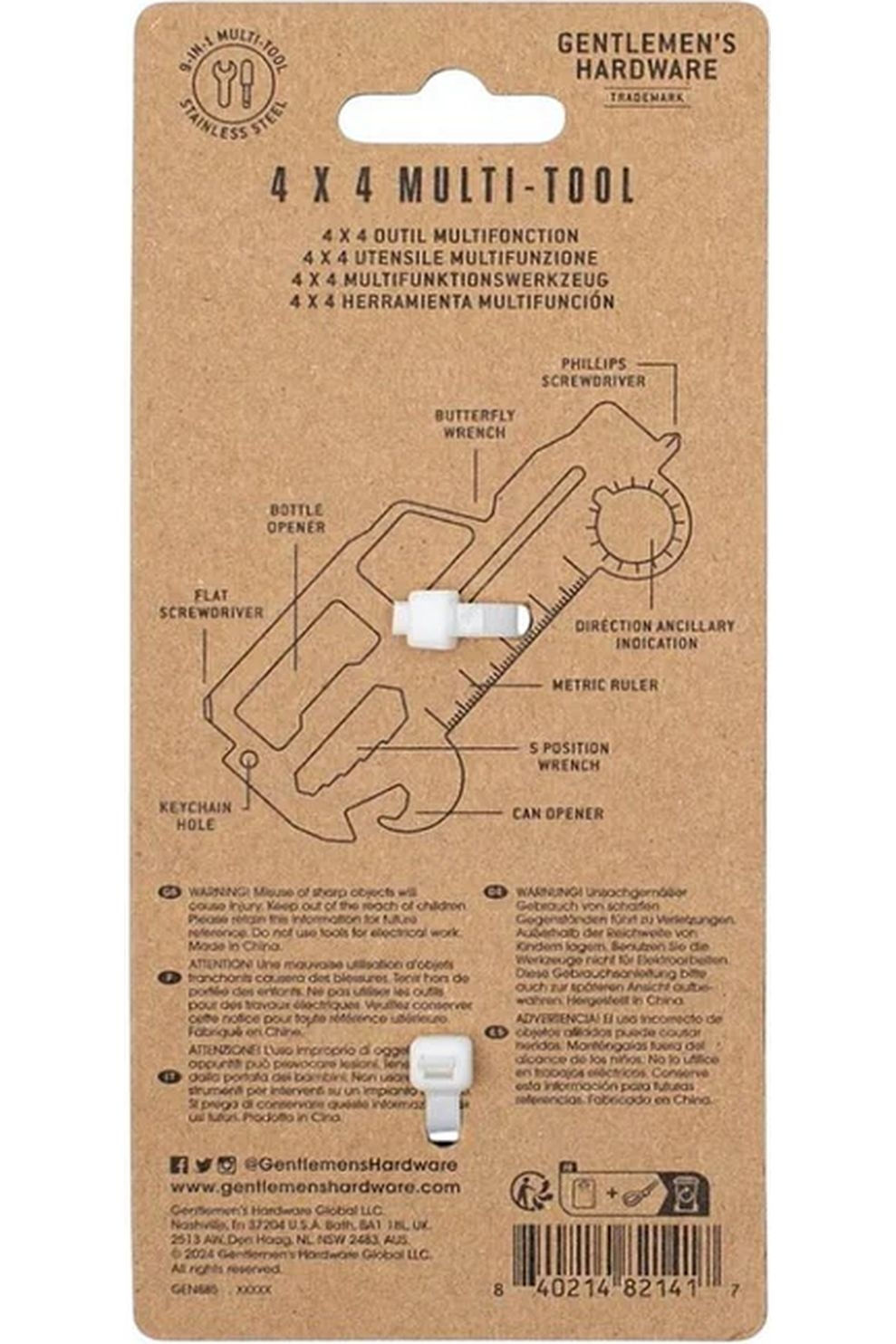 Het stoere 4x4-design geeft deze Auto Creditcard Multitool een mannelijke uitstraling die kenmerkend is voor Gentlemen's Hardware. De stevige afwerking zorgt voor duurzaamheid en langdurig gebruik.