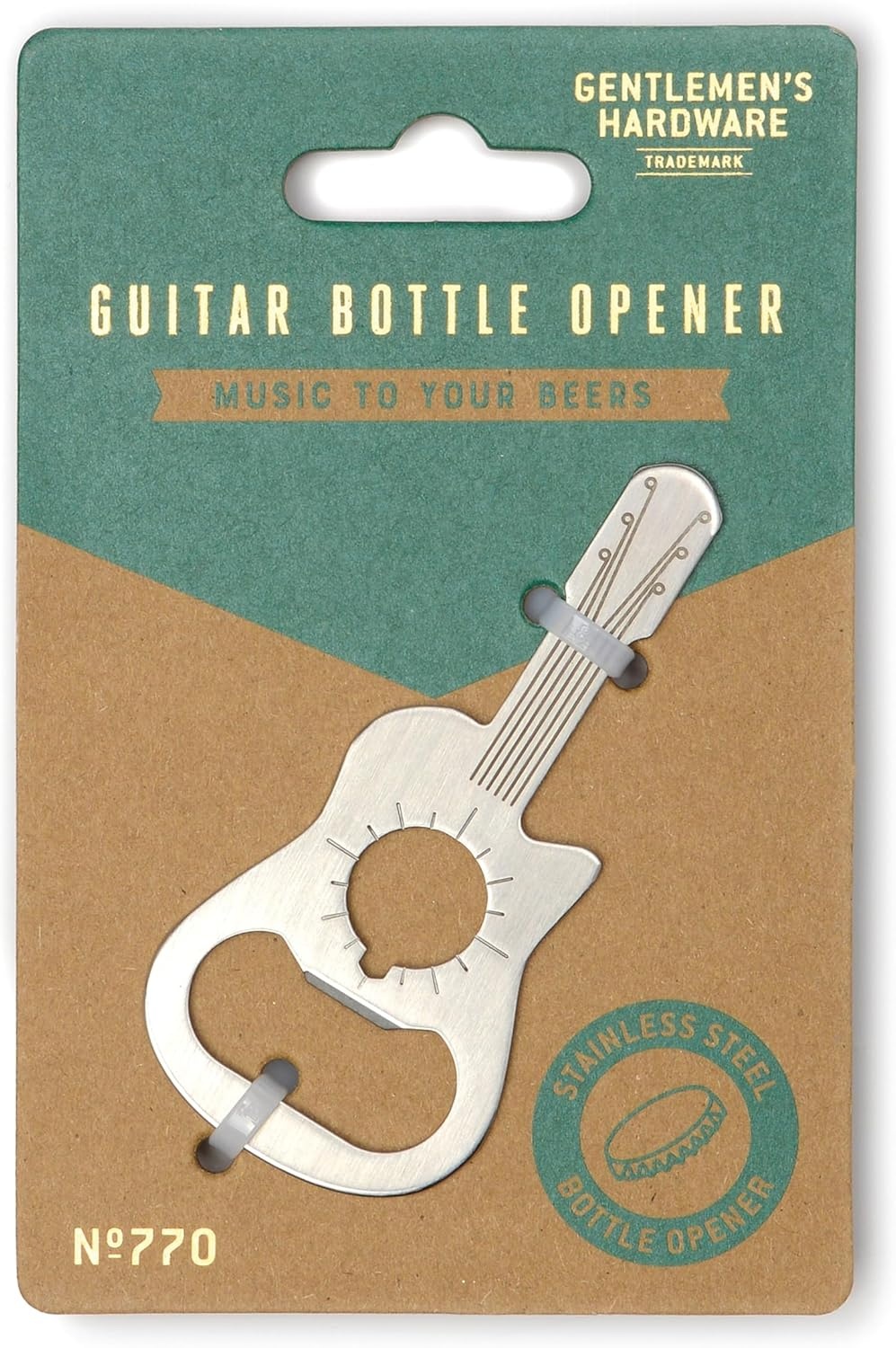 Ben je op zoek naar een origineel en praktisch mannencadeau? Met de Gitaar flesopener van Gentlemen's Hardware geef je een stoere flesopener die gegarandeerd in de smaak valt bij iedere muziekliefhebber