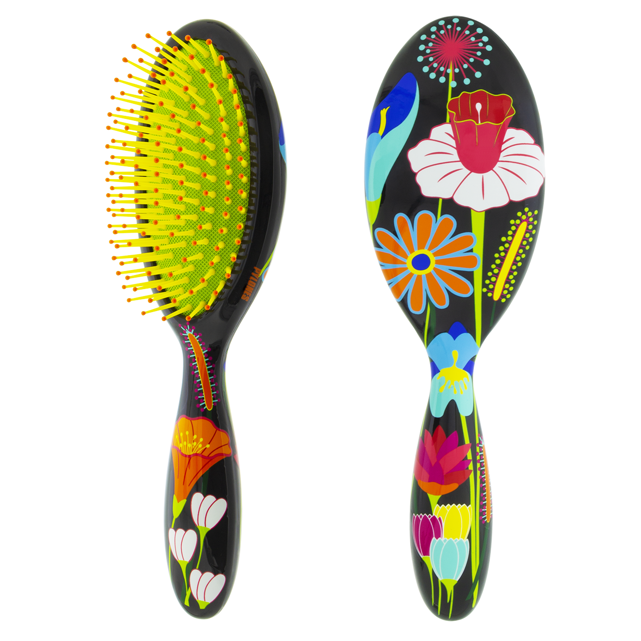 De Pylones haarborstel Ladypop Jardin Fleuri straalt vrolijkheid en elegantie uit. De kleurrijke bloemenprint geeft direct energie aan je dag. Elk detail toont het vakmanschap en de creativiteit van Pylones. Deze borstel is een kunstwerk dat haarverzorging bijzonder maakt.