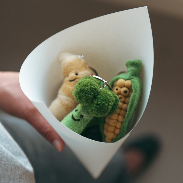 De collectie van sleutelhangers van vilt werd oorspronkelijk ontworpen door het Belgische merk Person’Elle, dat met zijn groente- en fruitfiguren een groot succes kende. In Nederland wordt de lijn nu met trots verkocht onder de naam MILA, onderdeel van IKPAKJEIN. Elk exemplaar is met de hand gemaakt en weerspiegelt vakmanschap en vrolijkheid.