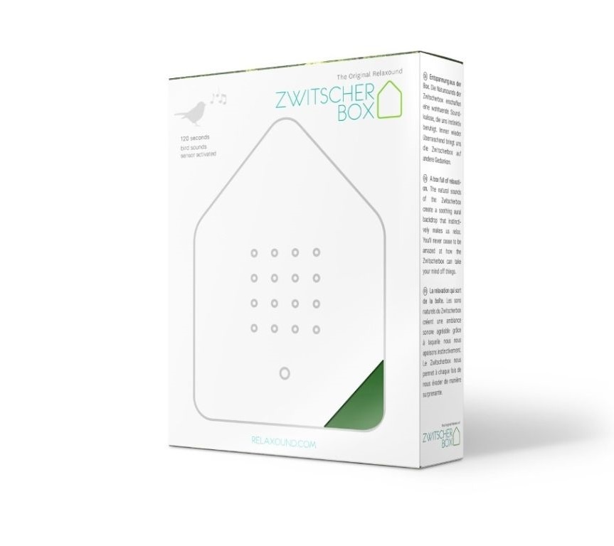 Bij elke beweging in de buurt van de Zwitscher box begint het rustgevende concert van vogels, waardoor een gevoel van kalmte en welzijn ontstaat.